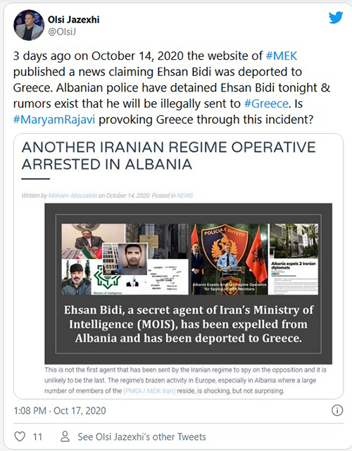 I ask the reader to focus on the date this article was published: on October 14, 2020. This date is extremely important! Mr Bidi was detained by the Albanian police this Saturday, October 17, 2020. Naturally the question arises, how did Mr Aboutalebi know on October 14, that the Albanian police would detain Mr Bidi after 3 days. Is Mr Aboutalebi a Nostradamus of the 21st century?!?!?! Has the MEK infiltrated the Albanian police, to find out three days before a detention or an arrest, that the police will carry it out??!?! In this case, I, as an Albanian patriot, ask: Is there any counter-intelligence in Albania, when a stateless former terrorist old woman can infiltrate the ranks of the Albanian police to decision-making levels?!?!?! Have sections of the Albanian police up to the level of directorate and anti-terror not only just become the assholes of the former terrorist Rajavi, but also “Deputies” of the Rajavi Cult??!?!