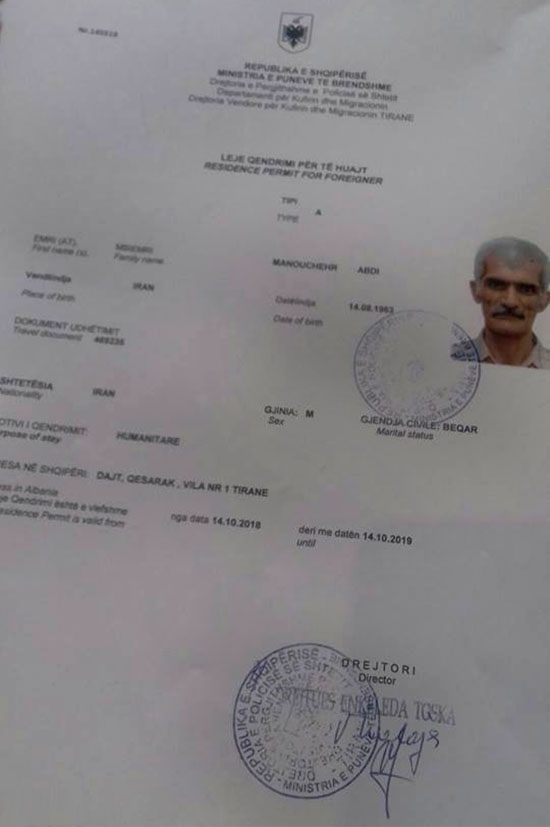 Mr Manoucher Abdi is an Iranian citizen, who many years ago became a part of the MEK (Mojahedin-e Khalq), a revolutionary, formerly terrorist, organization currently characterised as a cult. After many vicious conflicts with various powers in Iran (the Pahalvi monarchy and later the Islamic Republic of Iran) this organization was removed from the list of terrorist organizations. In 2013, in the last months of Berisha’s government, several hundred fighters from this organization came from Iraq, where they were accommodated as allies of the dictator Saddam Hussein in Albania with the official status of UN-protected persons. During the years of Prime Minister Rama several thousand members of this organization (from 2000 to 4000) came to Albania from Iraq, but also from other countries such as Bulgaria. The organization claims that from its Albanian base called Camp Ashraf 3 it continues to carry out a fierce fight against the legitimate government of Iran, which the MEK calls the mullah’s regime of Tehran. Several dozen MEK members have deserted the ranks of the organization citing the case that Rama’s government supports MEK, the cult of Madam Rajavi which supported Saddam Hussein in Iraq. These frustrated, disenchanted MEK survivors continue to live in Albania and the UNCHR pays some money for their survival. Some of them, often financially supported by the MEK itself, have managed to leave Albania and illegally enter various EU countries.