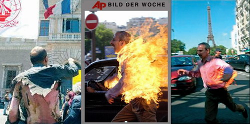 In the caption of a photo of Hamid Arafa and two other people who self-immolated during the arrest of Maryam Rajavi, Amir Yaghmai writes: