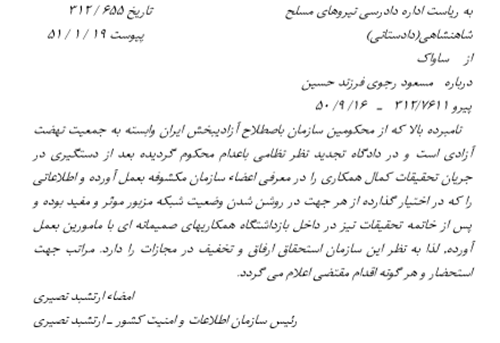” نامبرده از هر جهت درروشن شدن وضعیت شبکه مزبورموثر و مفید بوده است…” توجه کنید!