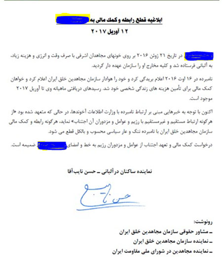 اما سازمان برای جلوگیری از افشاگری جامعه مستقل جداشده ها در آلبانی، آنها را مجبور می کند برای گرفتن مقرری ماهیانه پناهندگی، هر ماه به مقر مفید مراجعه کرده و بدین ترتیب از افشاگری آنان چند صباحی جلوگیری کند!