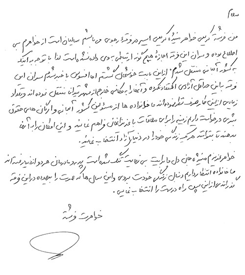 خانم فرشته کریمی نامه ی ذیل را خطاب به خواهرش منیژه از اسرای فرقه ی رجوی نوشته و از ارگان های حقوق بشری خواسته تا زمینه ملاقات با آنها را فراهم نموده و این امکان را به آنها بدهند با بتوانند هریک زندگی خود را در دنیای آزاد انتخاب نمایند.
