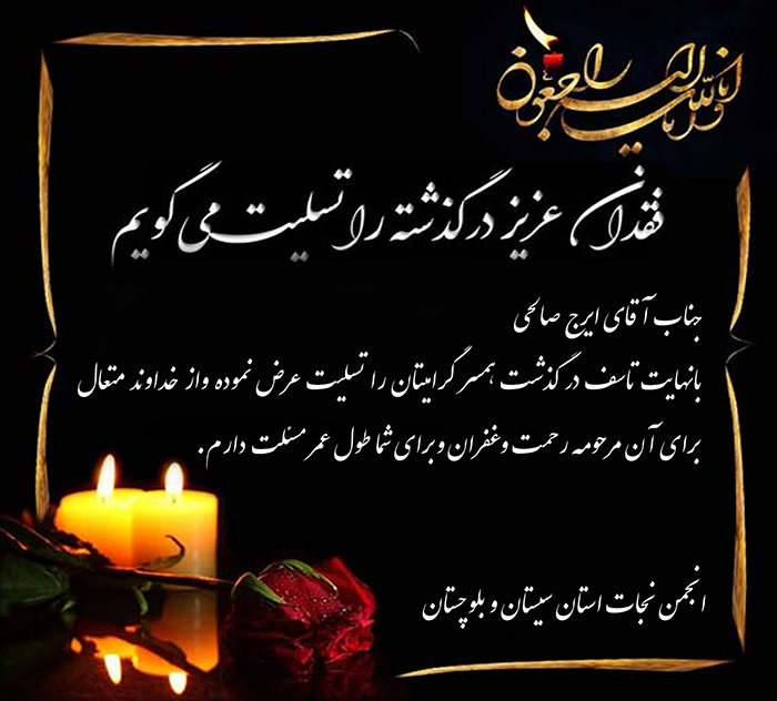 پیام تسلیت انجمن نجات لرستان به آقای ایرج صالحی