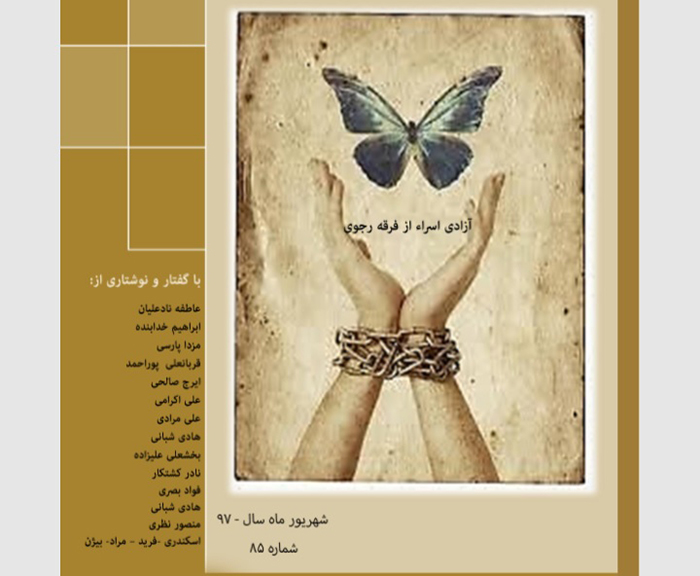 در این قسمت می خوانیم: سخن سردبیر خبرهای پاییز 1404 انجمن نجات خشونت علیه زنان روز جهانی مبارزه با خشونت علیه زنان فیلم “صدای درون من” سیلی خوردن توسط فرمانده غسل هفتگی بررسی روانشناختی سازمان مجاهدین خلق انزوای واقعی بازگشت به مسیر زندگی سند ماندگار خیانت به کشور و وطن فروشی من چه گناهی کرده […]