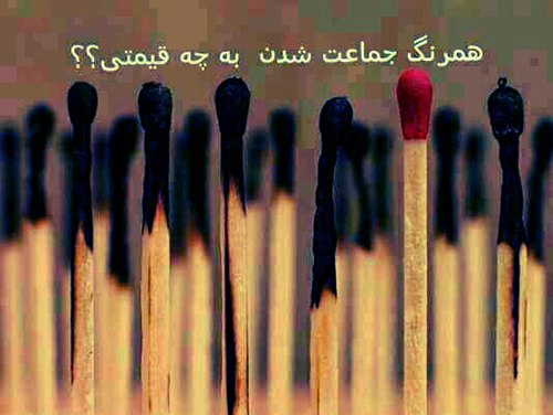 “در سال های ابتدایی که پایگاه های هواداران سازمان در خارج از کشور به وجود آمدند (سال های بین 1358 تا 1360)، برقراری هر قاعده و قانون جدیدی خیلی سخت بود و با مقاومت همه ما رو به رو می شد، ما برای هر قاعده و قانونی دلیل منطقی طلب می کردیم و حتی با وجود چنین دلایلی افرادی بودند که تن به قوانین نمی دادند، کار عمده ما در نشست های جمعی طی آن سال ها برخورد با این موارد بود و این که چگونه می توان متخلفین را تنبیه نمود؛ اما بعد از مدتی (یعنی پذیرفته شدن یک قاعده و قانون از طرف ساکنین یک پایگاه دیگر) ما با مشکلی، شکی یا سؤالی حتی از طرف تازه واردها رو به رو نبودیم. دلیل اطاعت تازه واردها از مقررات پایگاه های جمعی بدون شک و سؤال، این نبود که آن ها از ما (نسل گذشته) مطیع تر و سر به راه تر بوده یا کمتر کنجکاو و بهانه گیر بودند بلکه در اینجا قانون”همرنگ جماعت شدن” کار خود را می کرد. فرد تازه وارد می خواست هر چه زودتر”یکی از بقیه” و”یکی از بچه ها” شود و در نتیجه بدون آن که بداند چرا، جهت انطباق خود با بقیه، تمام سعی اش را می کرد که از قوانین تبعیت نماید و گاه حتی به قولی چپ هم می زد و کاسه داغ تر از آش می شد. پیروی از سایر هم قطاران، رفتار فرد را عوض می کند و عوض شدن رفتار باعث تغییر شخصیت می شود.”