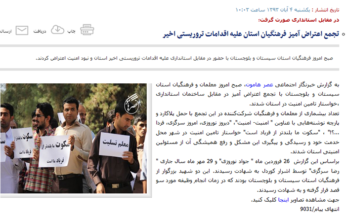 منبع این خبر مربوط به یکی از صفحات خبری فرقه رجوی در فیس بوک، بنام رحیم بلوچ است. گرداننده ی این صفحه اصلاً بلوچ نیست اما چون عمده فعالیت صفحه اش پوشش وضعیت استان سیستان و بلوچستان می باشد این اسم را انتخاب کرده است.