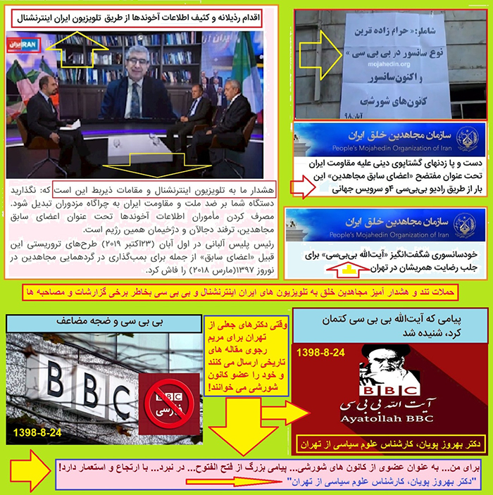 قضیه حمله مریم رجوی به رسانه ها به اینجا هم ختم نشد و چهار هجمه پی در پی به تلویزیون BBC در روزهای 20 و 24 آبان نشان داد که مجاهدین چه بلحاظ سیاسی-اجتماعی و چه از نظر روحی اوضاع مناسبی ندارند. جالب اینکه دو هجمه آنان کاملاً مشابه، و تنها جای دو بیانیه شورا بالا و پایین شده است!. یک مطلب نیز از قول شخصیتی جعلی به نام “دکتر پویان از تهران” منتشر شده که خود را عضو “کانون های شورشی” خوانده است!. بجز این موارد، شبنامه هایی علیه BBC هم توسط تعدادی از هواداران فرقه در داخل ایران نصب شده که به طنز ماجرا می افزاید و نشان می دهد که تا چه حد مسئولین مجاهدین دچار سردرگمی و آسیب دیدگی شده اند. مریم رجوی که چند سال پیش هیاهو می کرد “خروج مجاهدین از لیست تروریستی آمریکا معادلات منطقه ای و جهانی را بر هم می زند” و شعار “اشرف بایستد جهان خواهد ایستاد” سر می داد، امروز بخاطر گزارش و مصاحبه اعضای سابق خودش در رسانه ها، بشدت متزلزل شده و از شدت ضعف به هر دری می زند تا اثرات آنرا خنثی کند!.