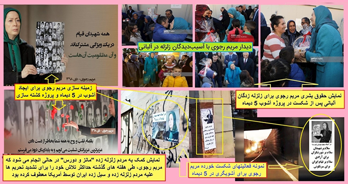 مریم رجوی در حالی به دیدار زلزله زدگان شهرهای مانز و دورس در آلبانی می رفت که هفته ها از وقوع آن می گذشت. هدیه دادن به زنان و کودکان این مناطق توسط مریم رجوی، اوج شارلاتان بازی سیاسی و حقوق بشری او را جلوه گر می سازد. وی که ماههاست دست از تلاش برای تشدید تحریم علیه مردم ایران (که طی یکسال گذشته درگیر سیل و زلزله بودند) برنداشته است، با وقاحت به دیدار زلزله زدگان آلبانی شتافته و از آنان دلجویی می کند. “تکریم” زلزله زدگان آلبانی و تلاش برای “تشدید تحریم” زلزله زدگان و سیل زدگان ایرانی، نشانگر دوگانگی ریاکارانه این الهه جنگ و خشونت است.