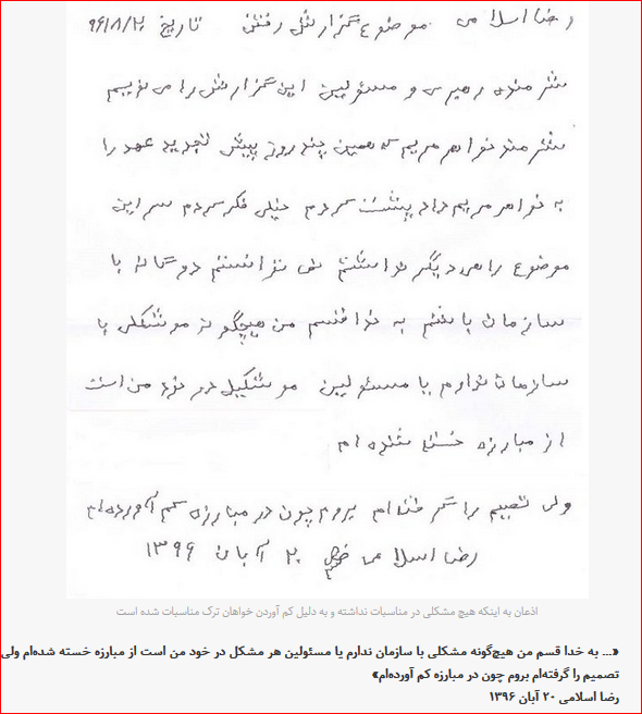 این کلیشه ی درخواست جدائی آقای رضا اسلامی از سازمان است :