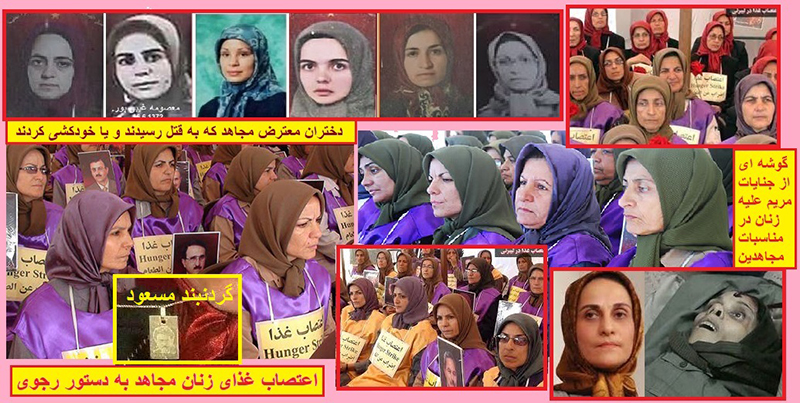 دهم) وادار کردن دهها زن به اعتصاب غذای نامحدود و بیمار کردن آنان!. پس از کشته شدن شماری از زنان و مفقود شدن تعدادی دیگر در حادثه حمله به قرارگاه اشرف، مریم رجوی دست به ترفند دیگری برای سرگرم کردن و به کشتن دادن گروهی از زنان مجاهد زد. به این شکل که دهها تن از آنان را به اعتصاب غذای اجباری کشانید تا با مرگ آنها خوراک حقوق بشری بیشتری برای بازی های سیاسی و لابیگری در دست داشته باشد. دیدن چهره نحیف و خونین اینگونه زنان در حالی که خود مریم در اروپا مشغول برپایی ضیافت های چند صدهزار یورویی بود، خشم و انزجار بسیاری از هموطنان را برمی انگیخت.