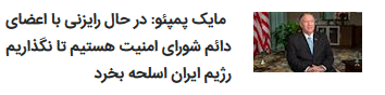 “وزیر خارجه آمریکا در یک برنامه رادیویی تأکید کرد قطعنامه ۲۲۳۱ شورای امنیت سازمان ملل متحد این امکان را میدهد که پس از انقضای تحریم تسلیحاتی این نهاد بینالمللی از خریداری تسلیحات متعارف توسط ایران جلوگیری شود.”