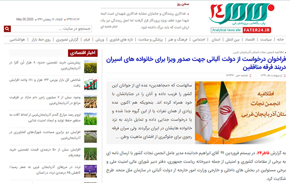 پایگاه خبری – تحلیل فاطر24 بتاریخ 15/02/1399 اطلاعیه انجمن نجات استان آذربایجان غربی را در صفحه اول خود درج و ندای خانواده های دردمند این استان را اطلاع رسانی کرده است.