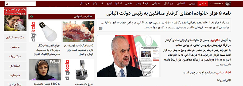 نامه ۸ هزار خانواده اعضای گرفتار منافقین به رئیس دولت آلبانی