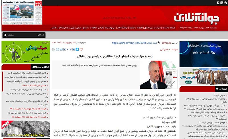 جمعی از خانوادههای تهرانی اعضای گرفتار در فرقه تروریستی رجوی در آلبانی، در پیامی خطاب به ادی راما رئیس دولت این کشور نوشتند: فرزندان ما اسیر دست تروریستها در کشور شما هستند.