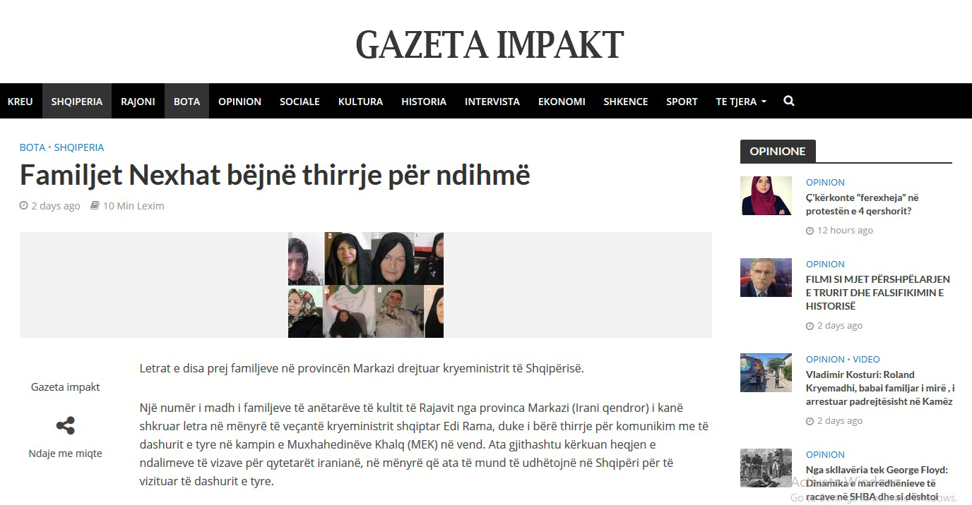 لینک به انعکاس مربوطه در سایت نشریه گازتا ایمپکت آلبانی