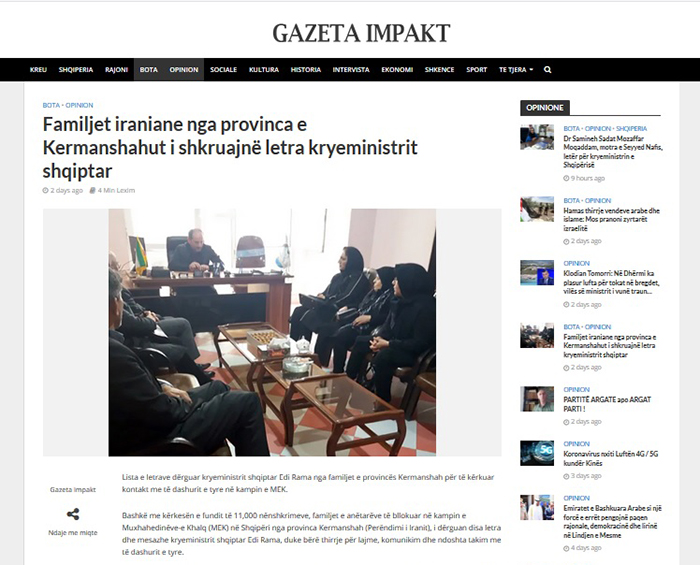 ترجمه این مطلب عینا در نشریه گازتا ایمپکت در آلبانی به تاریخ 24 ژوئن 2020 درج گردید: