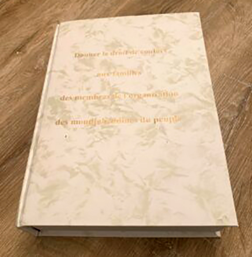 نام ها و امضاهای هزاران عضو خانواده اسرای فرقه ی رجوی به رئیس جمهور و مسئولین دولت آلبانی را به صورت یک کتاب بزرگ طی دیداری تسلیم مسئولین سفارت آلبانی در پاریس کردند.