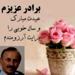 حلول ماه شعبان رو محضر پاک و نجیب نازنین برادرم تبریک و تهنیت عرض میکنم و از خداوند متعال برایت دراین ماه زیبا و آسمانی، خیر و برکت و سلامتی و شادی و رهایی از فرقه ضاله رجوی آرزومندم.