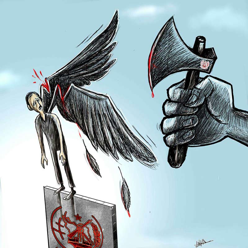 بله رجوی که خود را روزی ضد استثمار و غیره میدانست حال با خنجری بنام پول افراد را استثمار میکند و با شعار هر که با ما نیست بر ماست بر افراد جدا شده فشار میآورد .