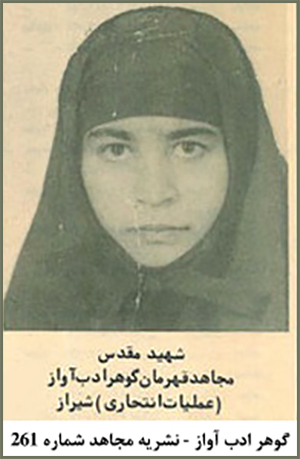 چندی بعد، امام جمعه وقت شیراز در عملیات انتحاری که دختر جوان مجاهد گوهر ادب آواز اجرا کرد، کشته شد. گوهر ادب آواز زمانی جان خود را بر سر آرمان مسعود رجوی گذاشت که ابوبکر بغدادی و داعش وجود نداشت و جهان هنوز تصویری از تروریست انتحاری به خود ندیده بود.