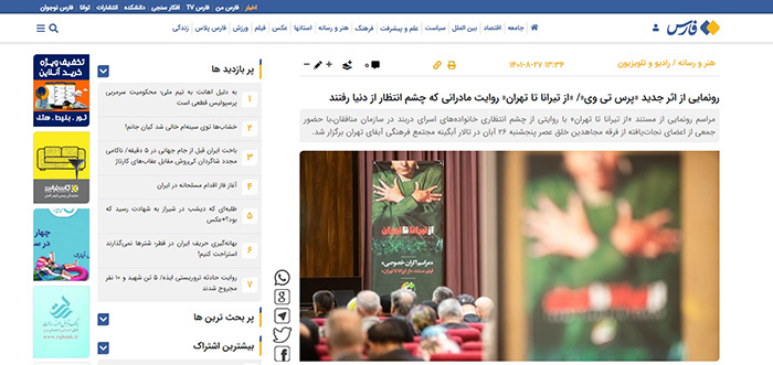 انعکاس رونمایی از مستند “از تیرانا تا تهران” در پایگاه اطلاع رسانی صدا و سیما