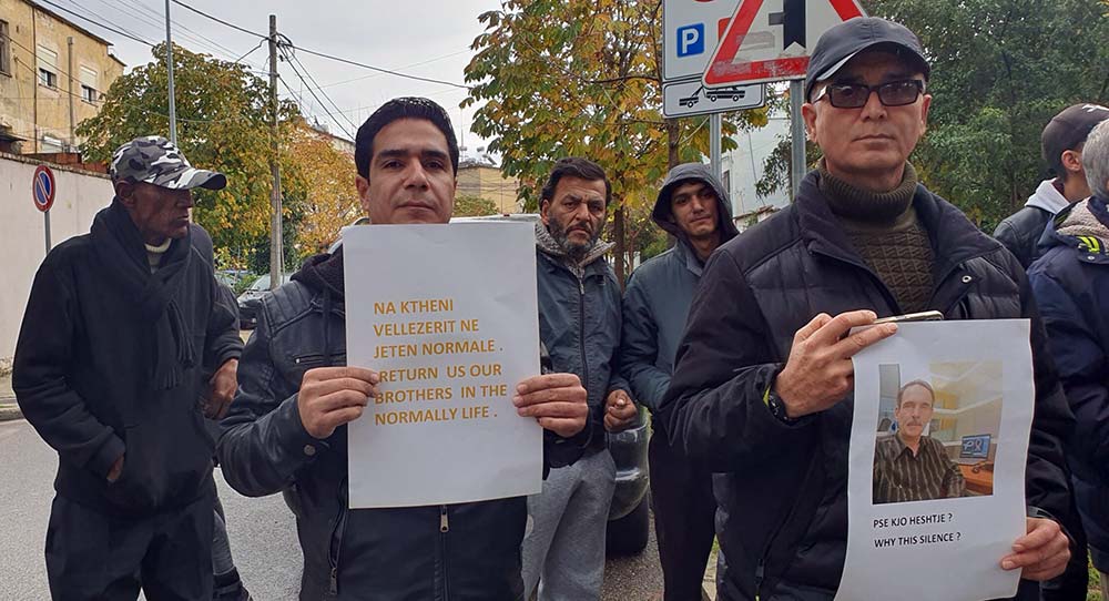 تجمع اعضای آسیلا مقابل اداره مهاجرت آلبانی