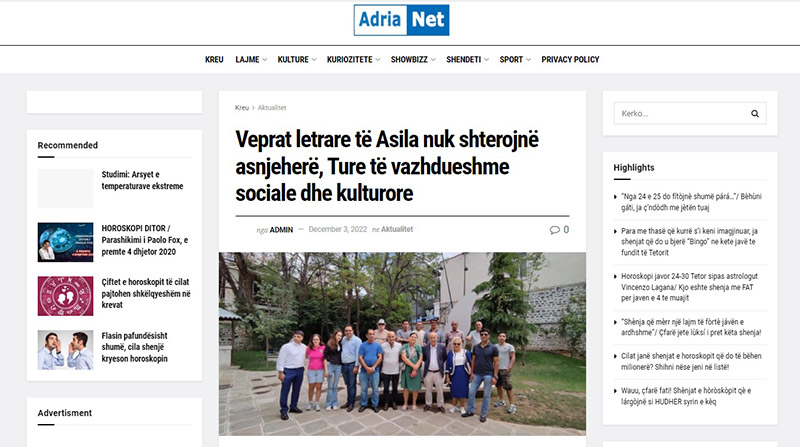 وبسایت آلبانیایی Adria Net در گزارشی نوشته است: کتاب جدیدی به زودی توسط آسیلا در بستر گسترش فرهنگ های مختلف اجتماعی منتشر و توزیع می شود. ده ها نمایشگاه توسط آسیلا با هدف توزیع نسخه های کتب مختلف با محتوای تاریخی، اجتماعی و فرهنگی برگزار شده است. از جمله «رباعیات» عمر خیام و همچنین اثر […]