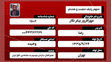مهرافروز پیکرنگار – متهم ردیف ۶۷ دادگاه مجاهدین خلق
